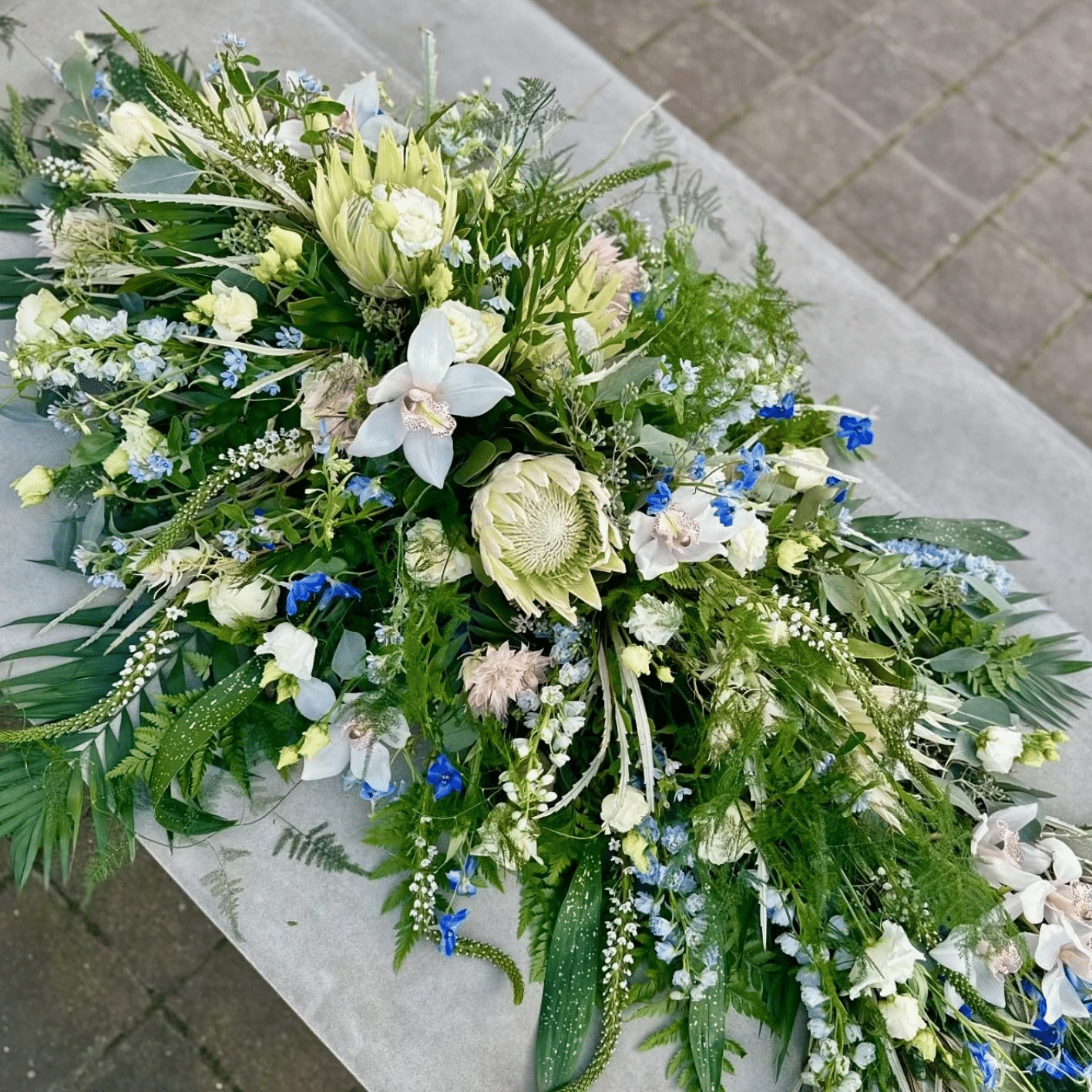 Kistepynt er et smukt og rørende blomsterarrangement til minde om den afdøde. Arrangementet kan tilpasses med blomster og farver efter dine ønsker for at afspejle personligheden og betydningen af den, du ønsker at ære. Billederne er til inspiration og ligger alle i mellem 2.000-3.000 kr.