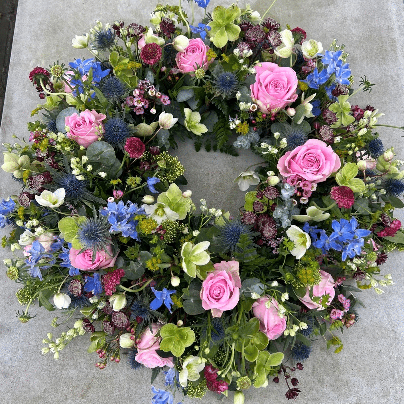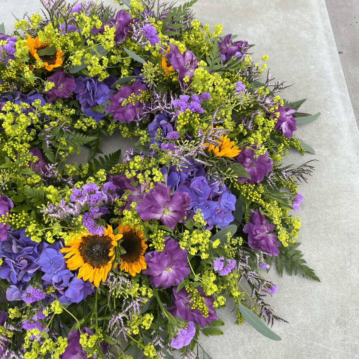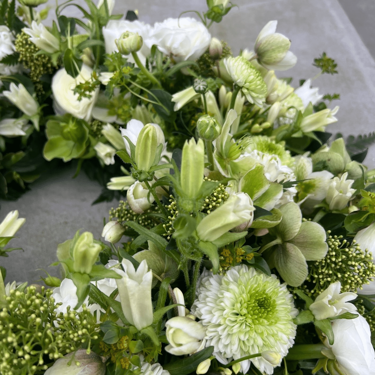 En oasiskrans er et smukt og rørende blomsterarrangement til minde om den afdøde. Hver krans er lavet i en oasisbase, som holder blomsterne friske og levende gennem hele ceremonien. Arrangementet kan tilpasses med blomster og farver efter dine ønsker for at afspejle personligheden og betydningen af den, du ønsker at ære.